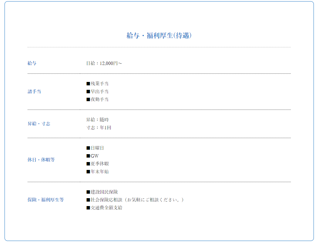 経験豊富な職人の方から、未経験者の方まで、幅広く受け付けております。